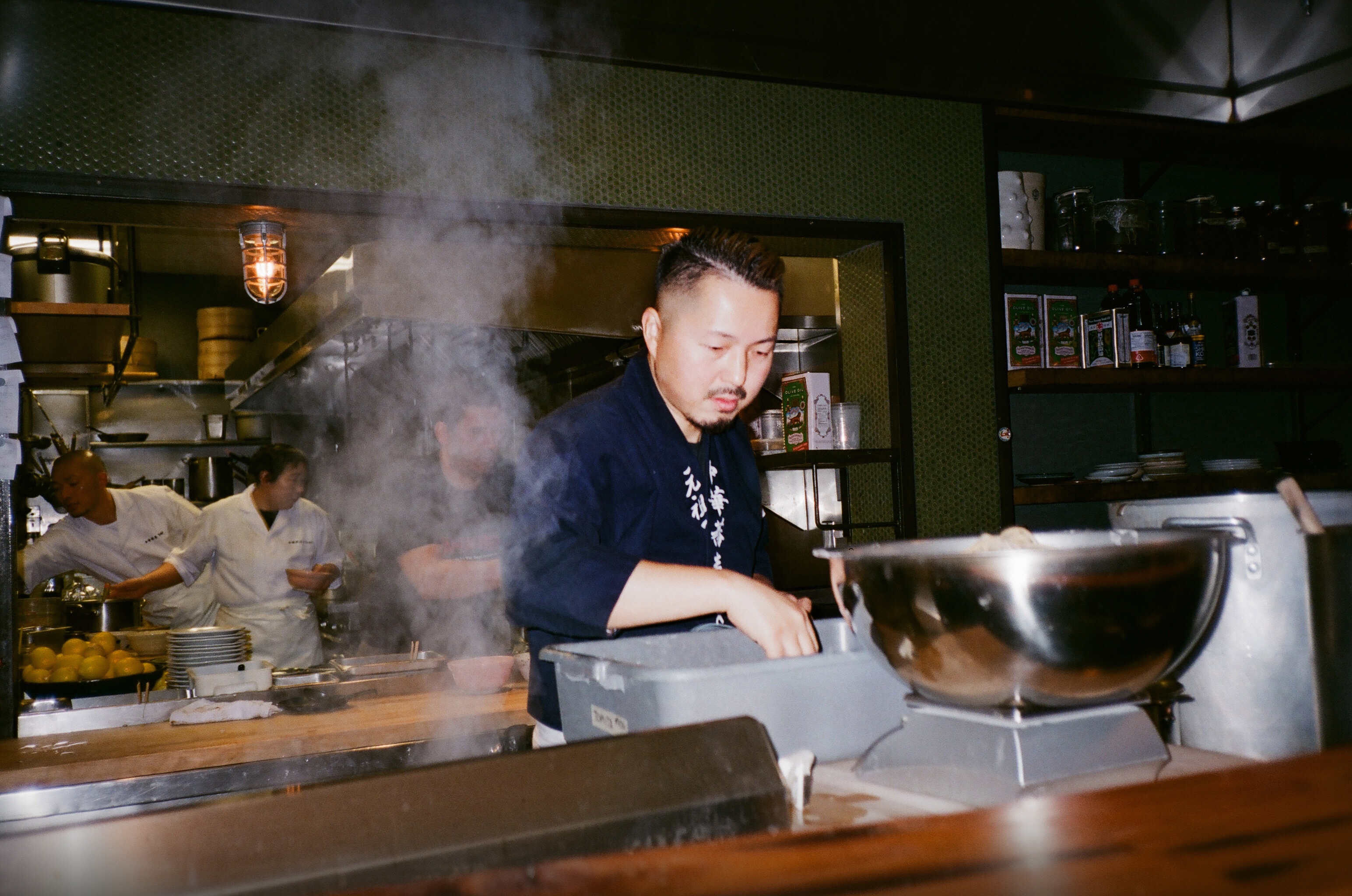 A friend of mine scored two tickets for a pop-up at the Ramen Shop by Osamu Tomita, King of Ramen in Japan. They say that the Rich Tonkotsu Gyokai Tsukemen (Dipping style of Ramen, Pork and fish base rich soup) by Osamu Tomita is to die for! With all the ingredients flown in fresh from Japan, it was everything they said. I caught the chef in action, busy creating our meal, a proverbial arm’s touch away. My tiny Konica BigMini did its best to capture the intense focus. It is not as beautiful a point-and-shoot film camera like the Contax T3, but I love how it feels in my hand. The film was the Fuji Superia 400 — not the best, but delivers in a pinch.