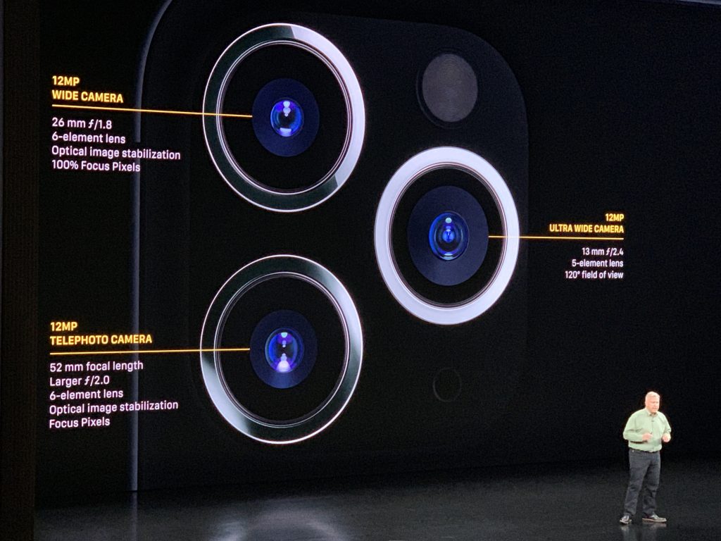 This one has three lenses and damn, I am excited about the camera. It is called Pro because it is for getting the work done and has the best tech on offer. New stainless steel. Two New finishes. Midnight green. New Gold. Too many upgrades to list. Just it is an upgrade from iPhone XS. They have a new Super Retina XDR display.