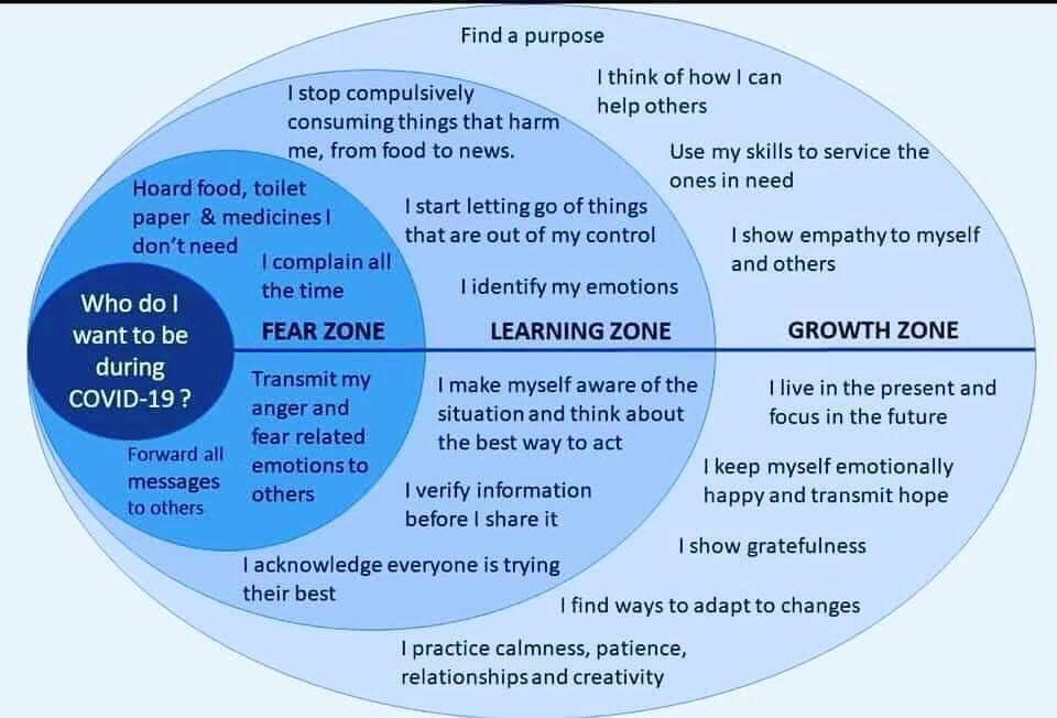 I have emerged from the dark blue zone, and I am now in the growth zone. If anything, after a month of being alone with my thoughts, I have started to make notes about what could possibly be different. I think there is a better-than-good chance that our behaviors change as a result of this pandemic.