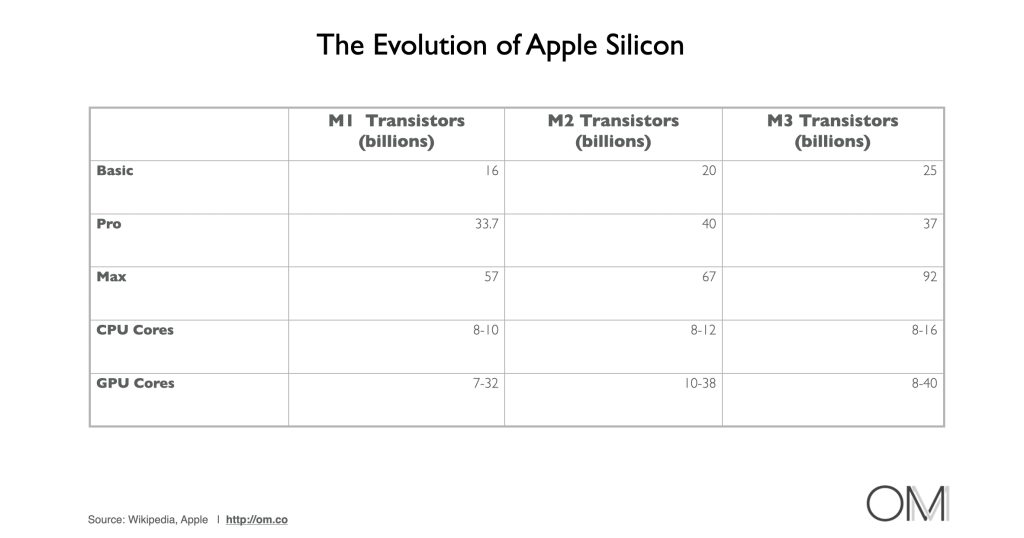 The new M3 chips are coming at an opportune time — Apple’s rivals, Qualcomm, Nvidia, AMD, and Intel, have been making noises about catching up with Apple. When Apple launched the M1 chip, I pointed out: