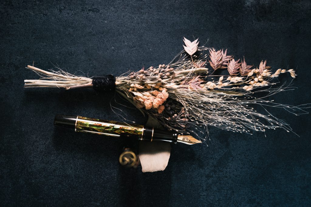 Objects transcend their physical manifestation once they acquire an emotional and spiritual patina. And that is how I feel about this new pen. The warm green, amber, and earthy tones of this seemingly translucent barrel evoke a sense of nature, and the onset of the coming fall season.