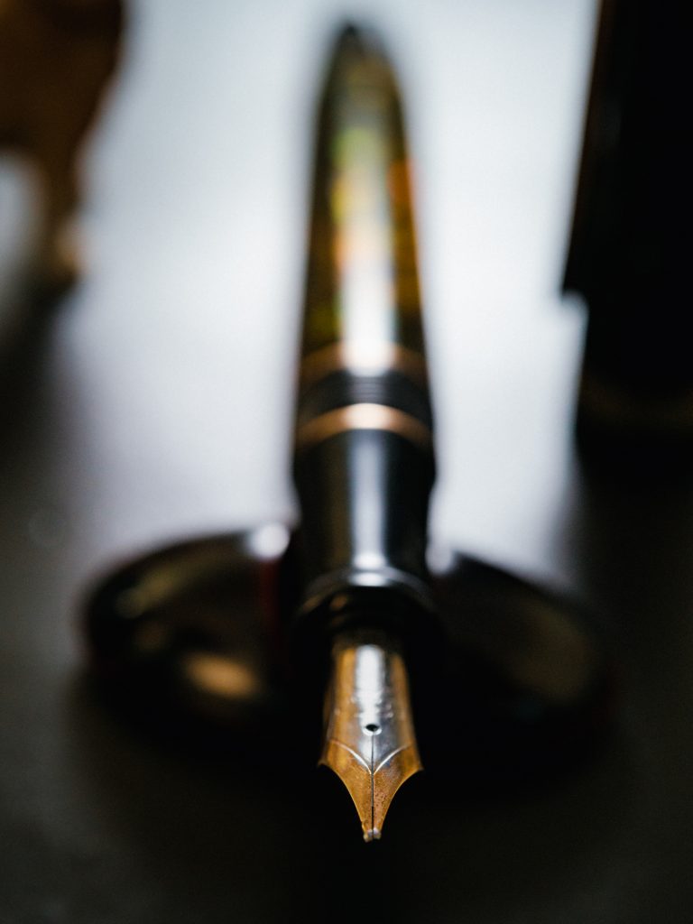 I fitted it with a very special Montblanc oblique broad nib from the 1950s, using a special custom adapter. The gold nib gives the pen luxury, refinement, and prestige.