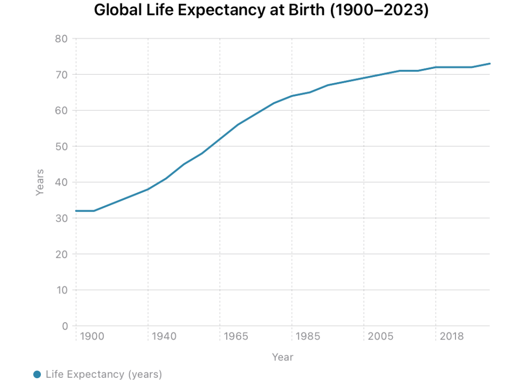At that time, what he wrote probably felt like a futile exercise. But was it? In 1900, the average human life expectancy was thirty-two years. Today it’s seventy-three. We more than doubled it in a century. Finding cures is progress. That’s real and measurable.