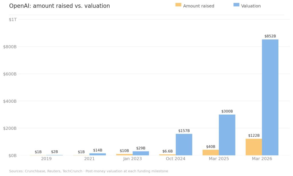So, the company says the round closed. $122 billion in committed capital, up from the $110 billion announced in February. Does committed mean money has passed the transom? We won’t know. What we do know is that at a post-money valuation of $852 billion, the anchors are Amazon, Nvidia, and SoftBank. Microsoft participated again, though not clear for how much. The additional $12 billion came from a who’s who of institutional money, including a16z, Sequoia, BlackRock, Blackstone, Fidelity, Temasek, D1, and Dragoneer. The FOMO gang!