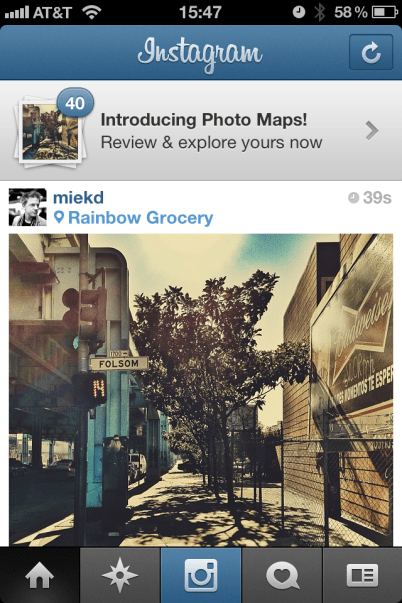 With every major release, we pick a theme – and for this one we’ve focused on the browsing experience. We’ve introduced a new and unique way to browse your photos and others’ photos on a map, which means you’re no longer constrained to browsing through page after page of photos. We’ve also worked hard on updating all the screens in our app to be more visually consistent and polished. [From Instagram blog]