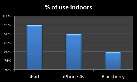• 90% of traffic from the iPhone 4 and 80% from Blackberry devices is from indoor use.